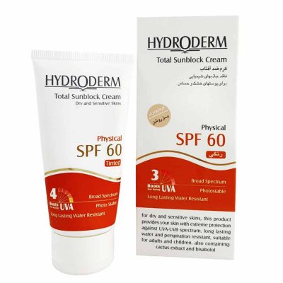 کرم ضد آفتاب SPF60 فیزیکال مناسب پوست خشک و حساس هیدرودرم (بژ روشن)